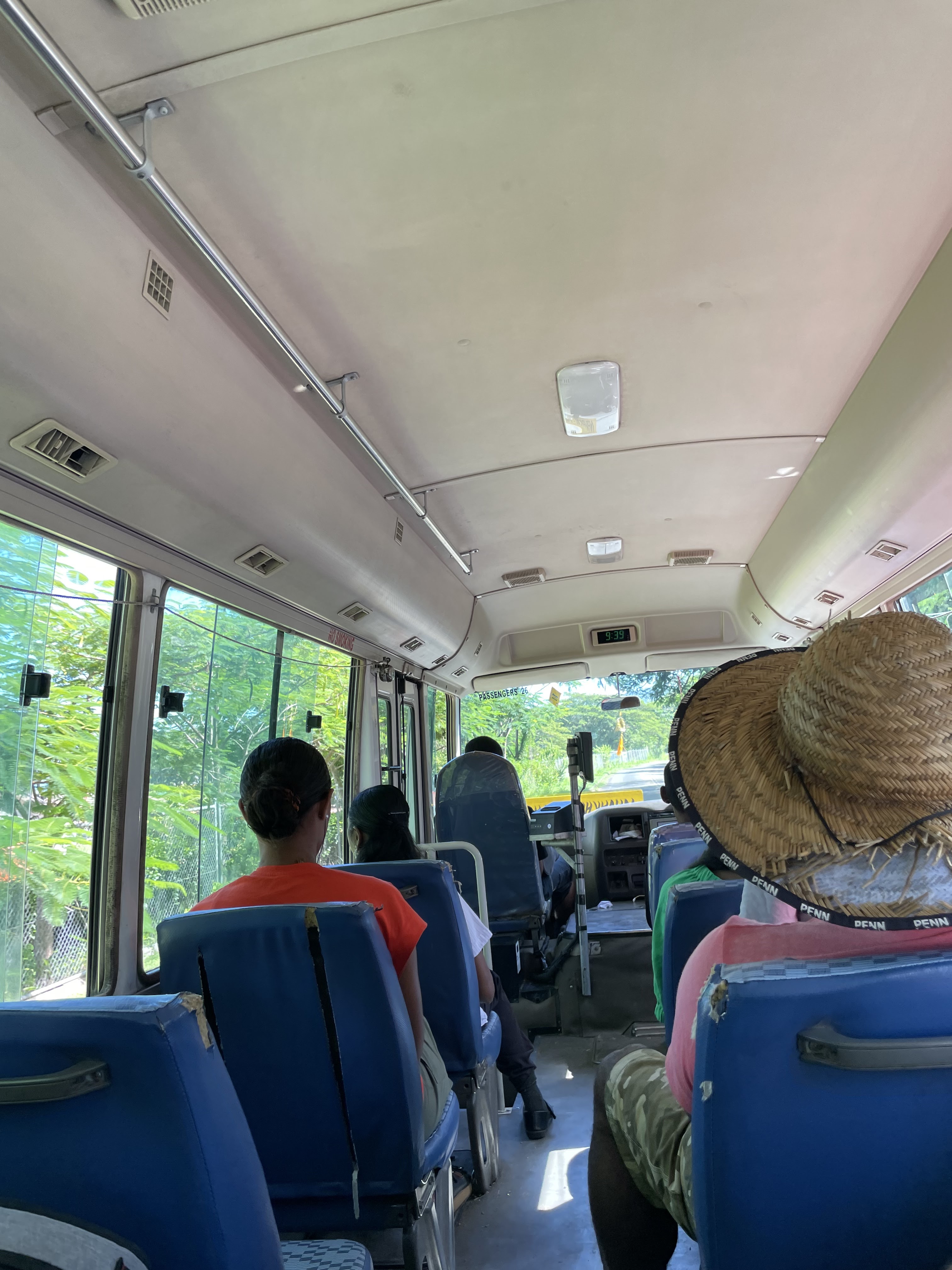 Die Busfahrt ist echt lang. Was unter anderem daran liegt, dass ich die ersten 1,5h eingequetscht zwischen zwei übergewichtigen Fijianern sitze. Puh das ist hier wie in mexiko! So viele fette Leute